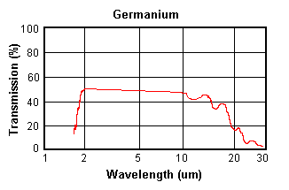 Germanium is most widely used for lenses and windows in IR systems operating in the 2~12 ¦Ìm range. Its transmission is very temperature sensitive, becoming opaque near 100¡ãC. Environment does not cause problems because Germanium is inert, mechanically rugged, and fairly hard.